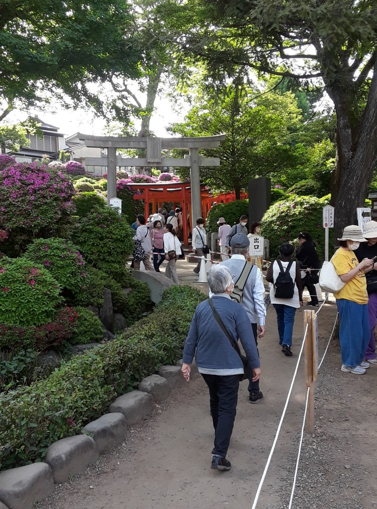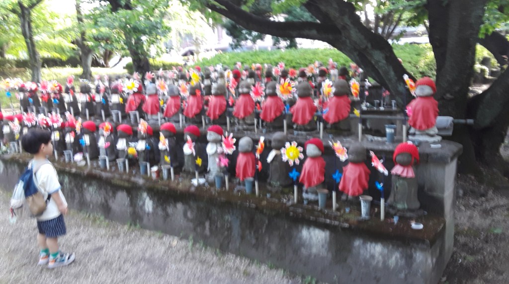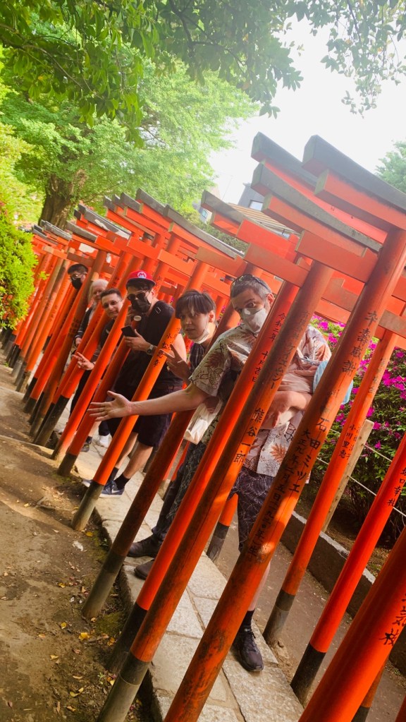 These little ones (sorry for the blurry picture) are called Jizo statues. They are representations of the deity “Jizo” who is a protector of children and travelers. The statues are dressed for Childrens Day in Japan. Some have crocheted little red caps or rain ponchos to keep them warm. Some also have pinwheels to celebrate the holiday. This is a large shrine, but one of the quieter ones in Tokyo.
